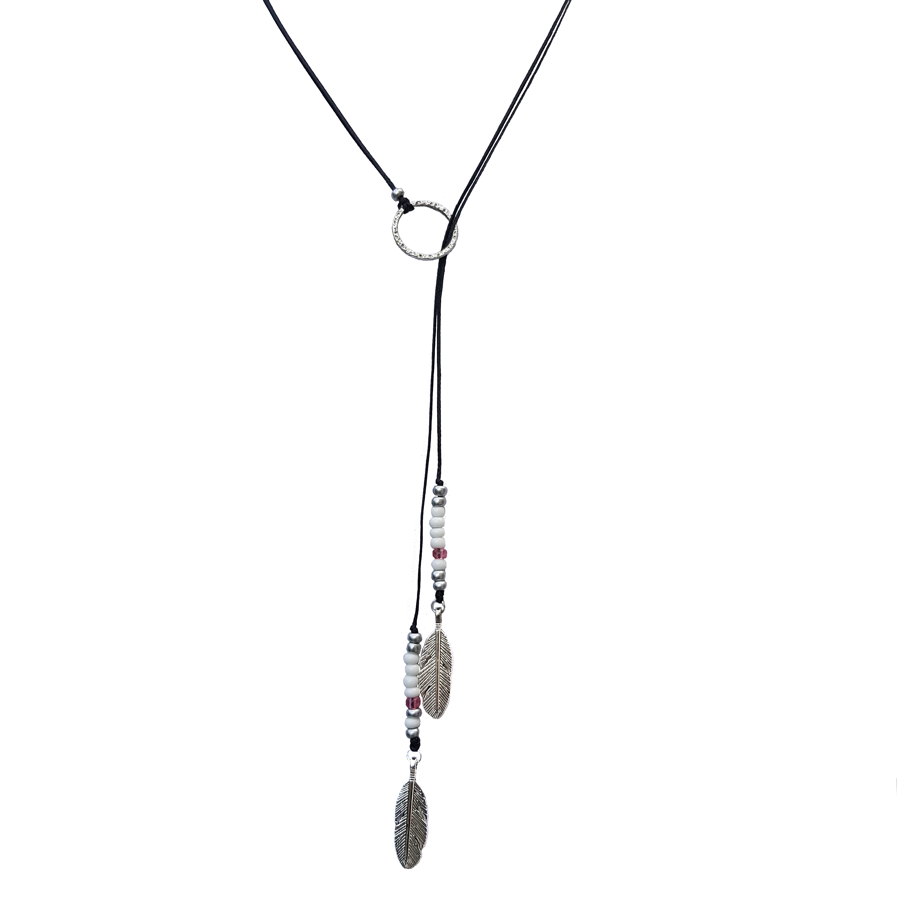 Χειροποίητο κολιέ με μεταλλικά φτερά και γυάλινες χάντρες.