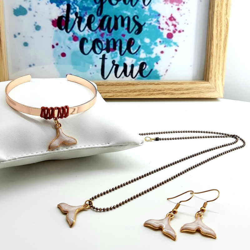 Λεπτό Βραχιόλι από υποαλλεργικό ορείχαλκο επιμεταλλωμένο, σε ροζ χρυσό χρώμα και στοιχείο ουρά φάλαινας