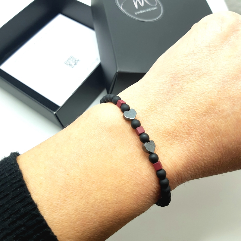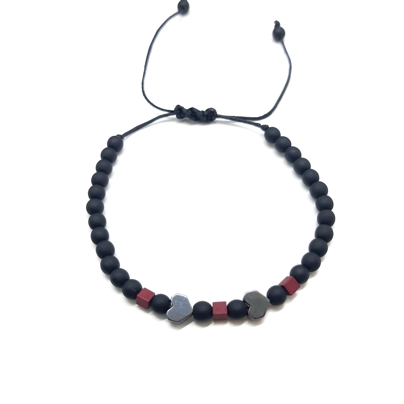 Χειροποίητο βραχιόλι με καρδιές και ματ χάντρες από Αιματίτη.