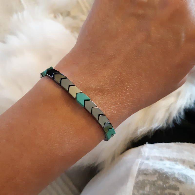 Χειροποίητο βραχιόλι με αιματίτη δύο χρωμάτων .Ιδανικό για όλα τα μεγέθη καρπού λόγω της αυξομείωσης στο κούμπωμα.