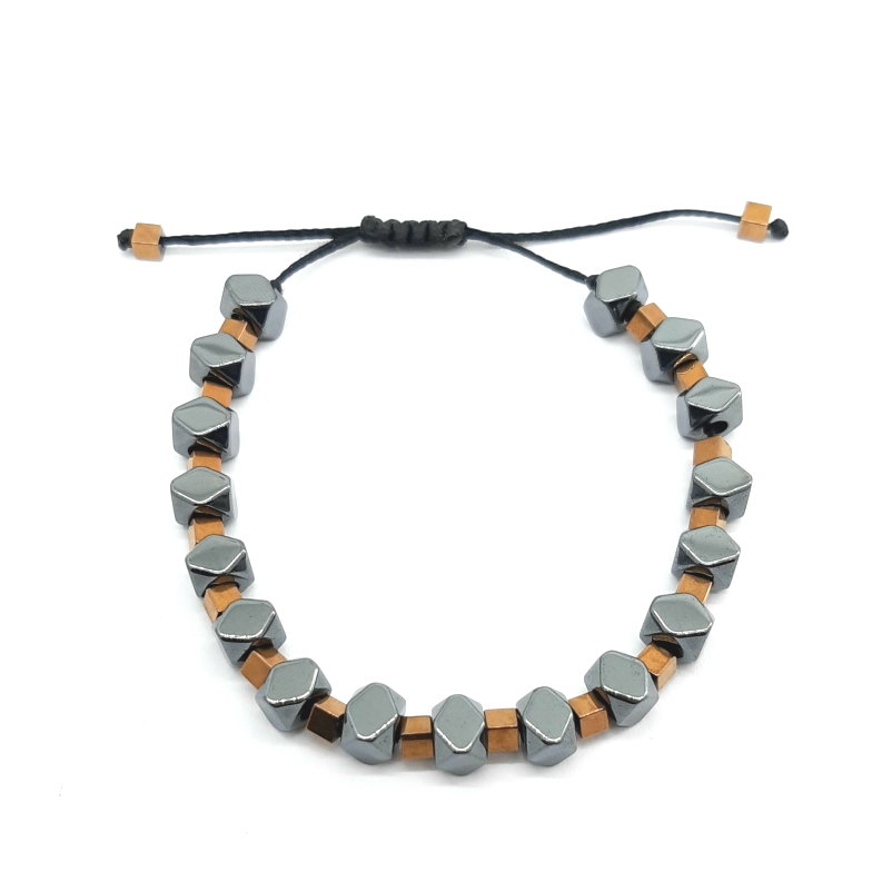 Χειροποίητο βραχιόλι με πολυγωνικό αιματίτη .Ιδανικό για όλα τα μεγέθη καρπού λόγω της αυξομείωσης στο κούμπωμα.