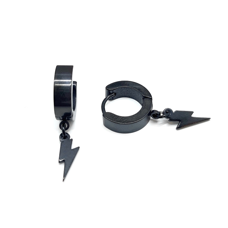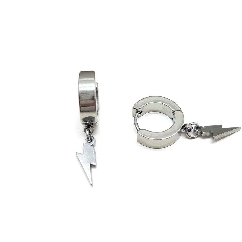 Unisex square mini hoops with hanging thunder, made of Stainless Steel