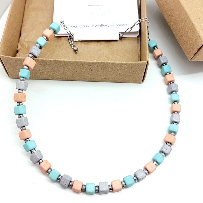 Summer necklace with ceramic cubes